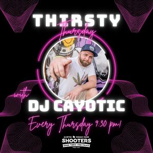 Note: we will not have Wednesdays with Cade on Wed 12/24 or 12/31 or DJ Night with DJ Cayotic on Thurs 12/25 or 1/1 or Karaoke on Fri 12/26 or 1/2.